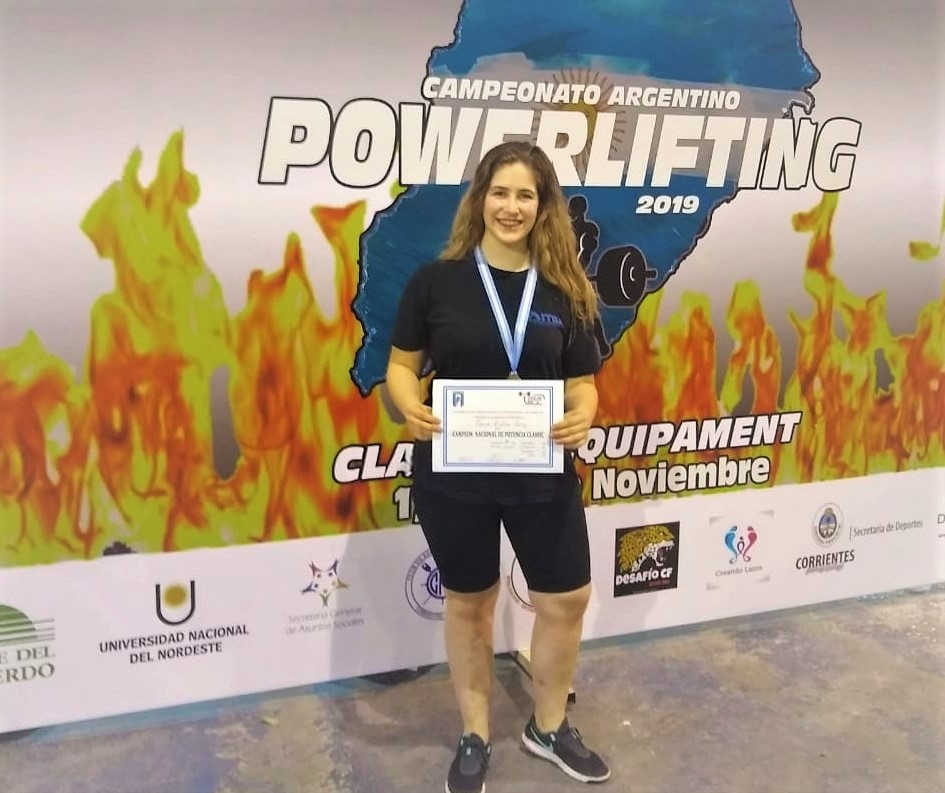 Como a todo adolescente promedio, el deporte apareció como una herramienta de integración y de equilibrio físico y emocional. Primero natación, para en 2016 comenzar a entrenar fuerza tanto en su ciudad como en Buenos Aires, cuando superó el ingreso al ITBA. Este año se generó el gran salto: quien la entrenaba en el gimnasio del YMCA le vio condiciones y le propuso competir en levantamiento de potencia (conocido también como powerlifting) Y en mayo apareció el primer trofeo, se consagró en el Torneo apertura 2019 de la Asociación de Potencia de Almirante Brown. Tomó ese resultado como un punto de inflexión, y este segundo cuatrimestre se mudó de gimnasio y pasó al Club de la Fuerza. Y llegó otro gran logro, obtuvo el primer lugar en el Campeonato Nacional de Powerlifting de FALPO – IPF, en la categoría Junior -84kg.